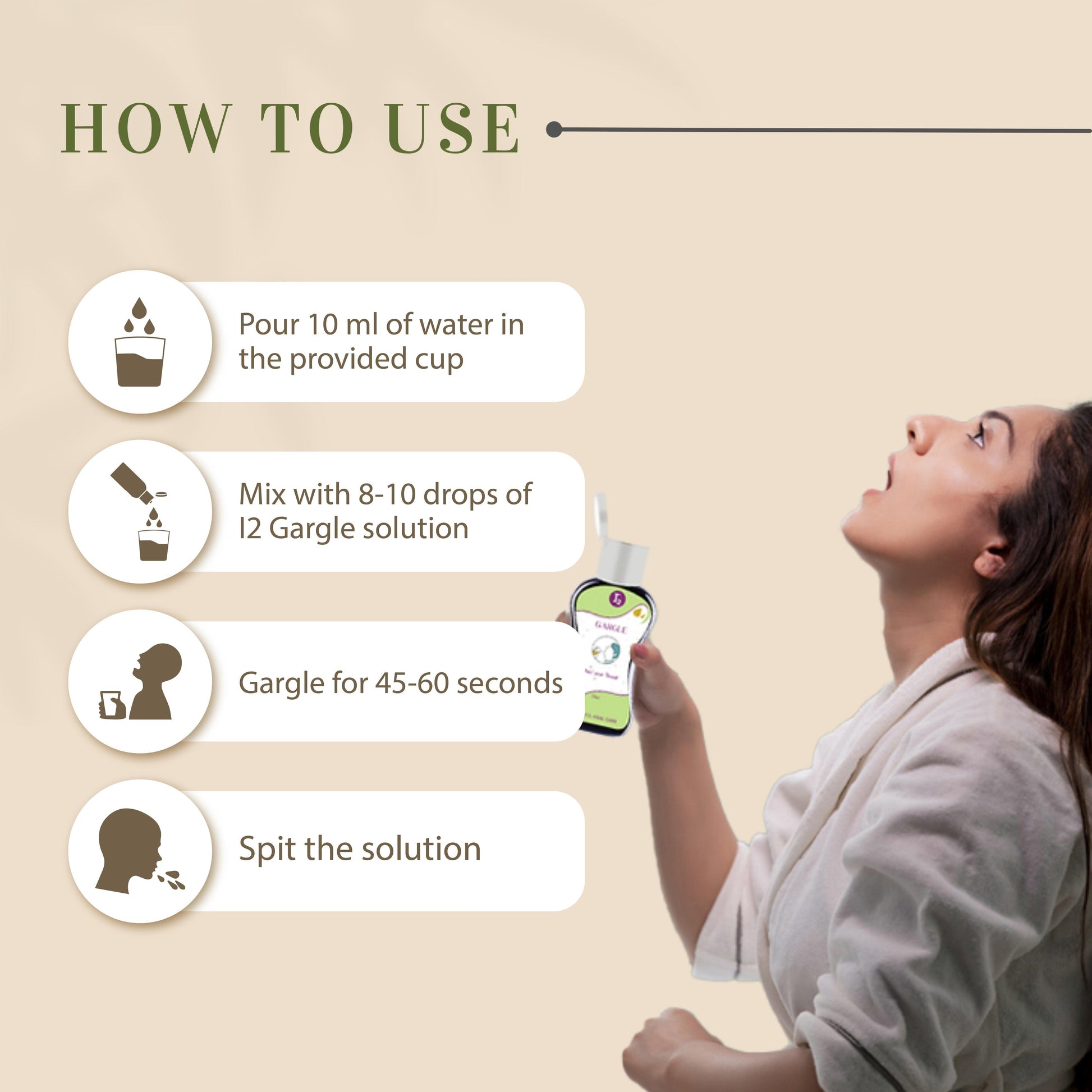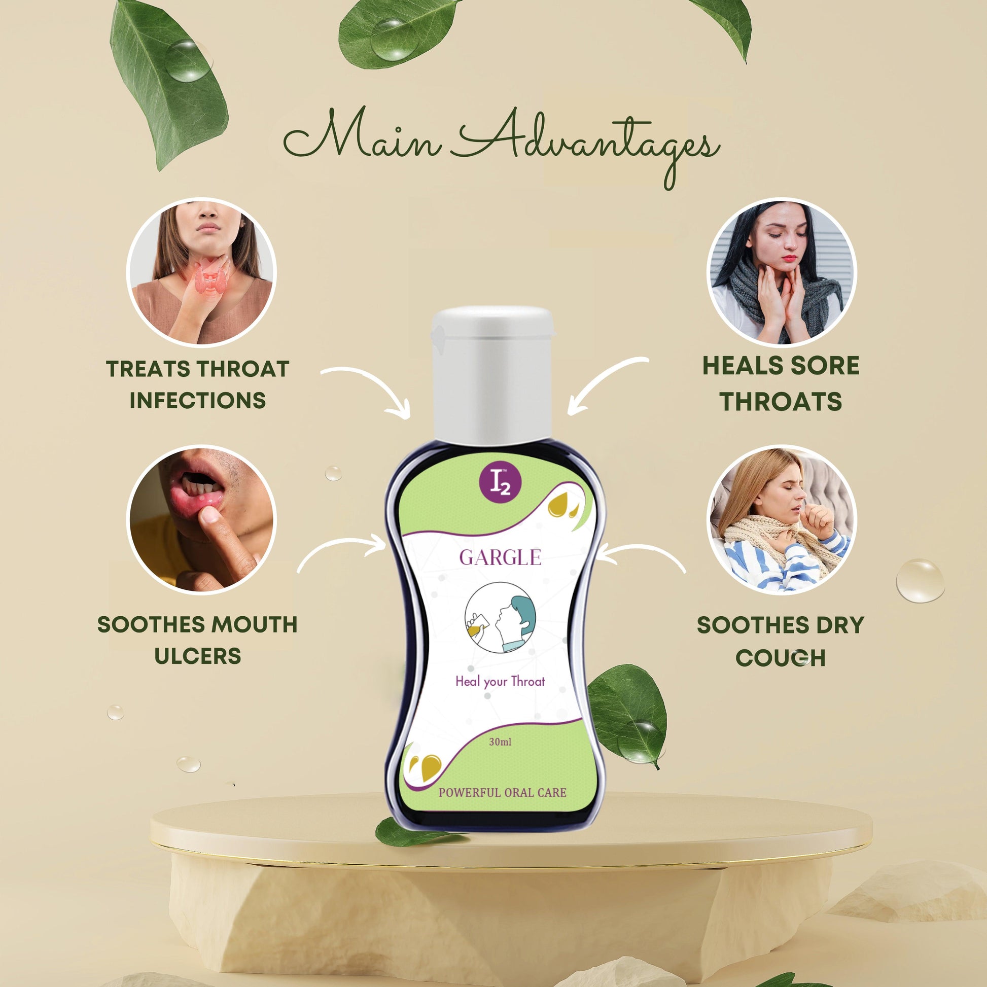 An advanced throat relief solution which gives immediate relief as the solution soothes irritation and inflammation, providing comfort and ease. The gentle yet effective action of Molecular Iodine targets harmful bacteria, while Glycerin helps to moisturize and hydrate the throat, promoting faster healing. The product boasts a non-staining, non-irritating, and odour-free formula, ensuring a pleasant and hassle-free experience with each use. Don't let discomfort ruin your day – choose Gargle and feel the difference for yourself.